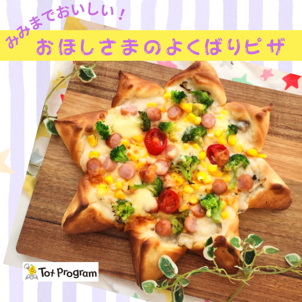 おほしさまの角の部分にも具材を入れて、どこを食べても美味しいピサです。